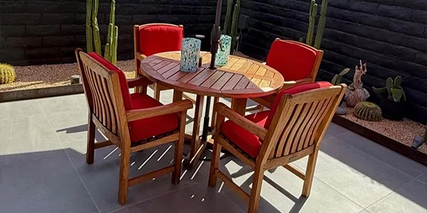 Make it unforgettable with freshly updated furniture! We'll revitalize your chairs and cushions with vibrant, high-quality Umbrella brand upholstery.